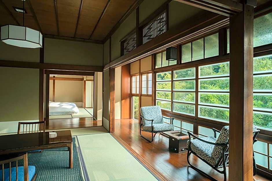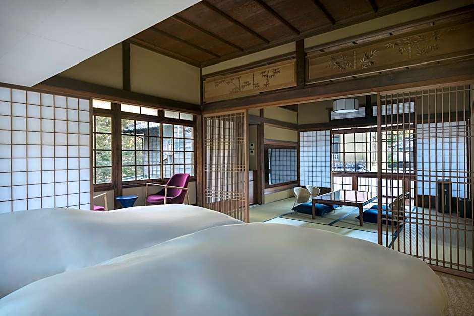 The spacious suite features 1 bedroom and 1 bathroom with a bath and free toiletries. The air-conditioned suite provides a flat-screen TV with satellite channels, tatami, a mini-bar, a tea and coffee maker as well as river views. The unit offers 2 beds and 2 futons.